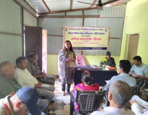 इस अवसर पर प्रबंधक बिंद्रा वृद्धाआश्रम पाबो प्रेम बल्लव पुसोला, रिटेनर अधिवक्ता कुसुम नेगी, खंड विकास अधिकारी पाबो धूम सिंह, सहायक खंड विकास अधिकारी पाबो जितेंद्र सिंह, प्रभारी सामुदायिक स्वास्थ्य केंद्र पाबो पंकज कुमार, प्राविधिक स्वयंसेवक/अधिकार मित्र अनिल पाबो क्षेत्र की भूतपूर्व सैनिक आदि उपस्थित रहे।