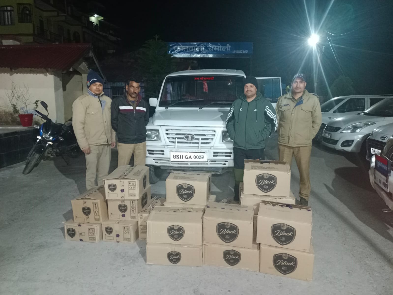 *पुलिस अधीक्षक चमोली प्रमेन्द्र डोबाल * द्वारा जनपद में अवैध शराब के विरुद्ध प्रभावी कार्यवाही करने हेतु दिए गये निर्देशों के क्रम में जनपद पुलिस द्वारा अवैध शराब के विरुद्ध लगातार कार्यवाही की जा रही है इसी क्रम में कल दिनाँक 26/02/2023 की रात्रि को कोतवाली चमोली पुलिस को मुखबिर द्वारा सूचना मिली थी कि गोपेश्वर से भारी मात्रा में पीपलकोटी क्षेत्र में अवैध शराब की सप्लाई की जा रही है। मुखबिर की सूचना पर पुलिस टीम द्वारा बद्रीनाथ राष्ट्रीय राजमार्ग पर चैकिंग के दौरान पीपलकोटी क्षेत्र में संभाव आश्रम के पास अभियुक्तों का पीछे करके पकड़ा गया। पुलिस को देख टाटा स्पेशियो नं0 UK 11 GA 0037 चालक गाड़ी छोड़ अंधेरे का फायदा उठा कर मौके से भाग गया, पुलिस द्वारा जब उक्त वाहन की चेकिंग की गयी तो उक्त वाहन से 20 पेटी अवैध अंग्रेजी शराब बरामद की गयी, पुलिस द्वारा उक्त वाहन को सीज किया गया है एवं अभियुक्त की तलाश जारी है।