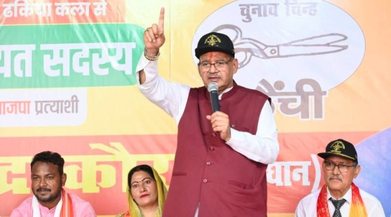 देहरादून/काशीपुर। त्रिस्तरीय पंचायत चुनाव के मद्देनजर प्रदेश के कैबिनेट मंत्री गणेश जोशी ने काशीपुर के ढकियाकला क्षेत्र में भाजपा समर्थित जिला पंचायत सदस्य प्रत्याशी सुरेंद्र कौर के समर्थन में आयोजित जनसभा को संबोधित किया।