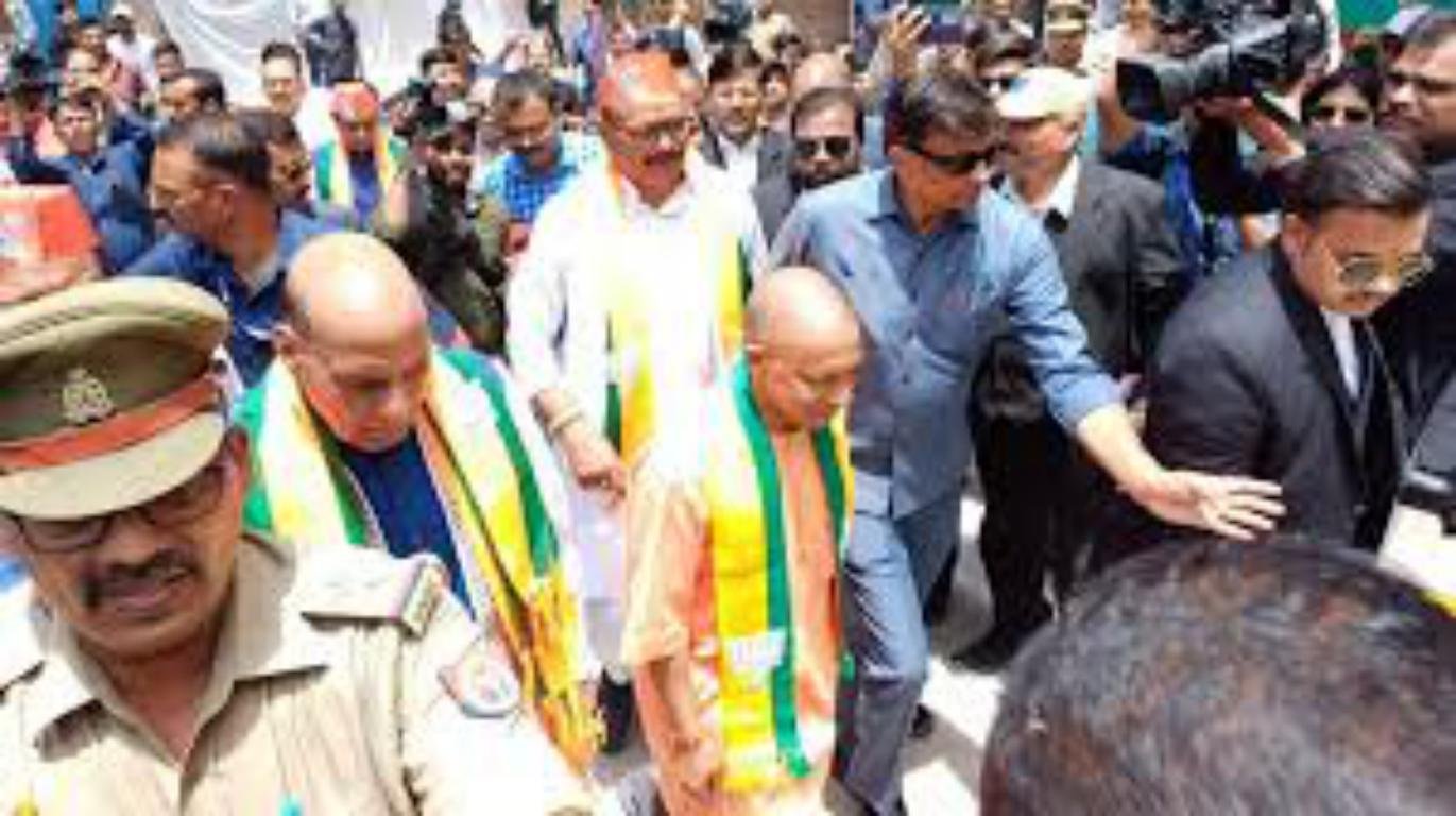नामांकन के दौरान योगी आदित्यनाथ एक हाथ में कमल और दूसरे हाथ में माइक लिए कमान संभाली। जय श्रीराम, जय श्रीराम, वंदे मातरम, वंदे मातरम के नारे लगाते हुए उन्होंने जनसमुदाय की आवाज को जोड़ते हुए कहा एक बार फिर मोदी सरकार। उधर, उप मुख्यमंत्री ब्रजेश पाठक रथ यात्रा पर सवार होते हुए जुलूस में शामिल सभी संगठन और संस्थाओं का धन्यवाद भी करते रहे। योगी आदित्यनाथ स्वागत करने वाले लोगों का धन्यवाद देते हुए भारत माता के जयकारे और वंदे मातरम के नारे लगाते रहे।