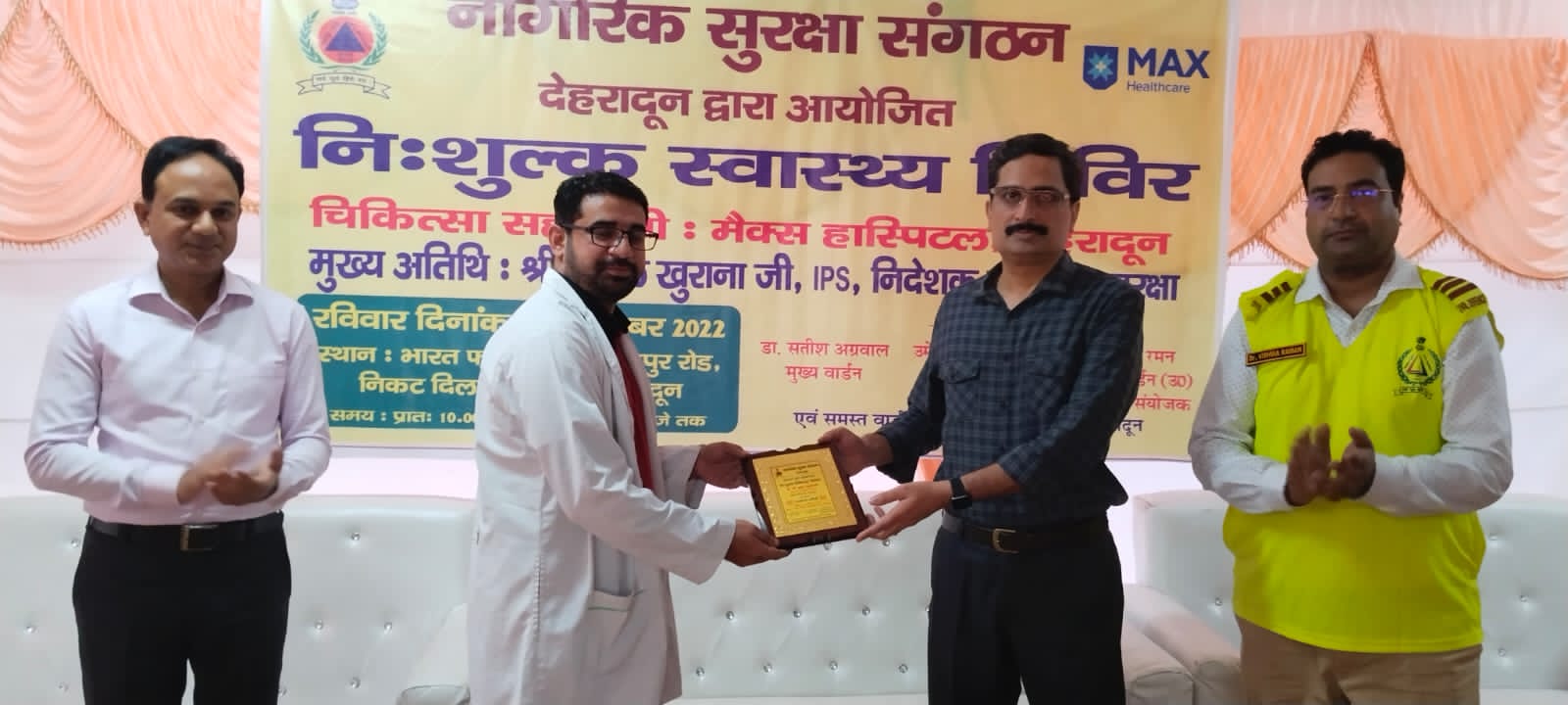 निदेशक नागरिक सुरक्षा उत्तराखण्ड का प्रभार केवल खुराना आई.पी.एस. द्वारा लेते ही नागरिक सुरक्षा देहरादून सक्रिय हो गया है। इसी क्रम में केवल खुराना के निर्देशन में दिनाँक 25-09-2022 को नागरिक सुरक्षा देहरादून द्वारा एक निःशुल्क स्वास्थ्य कैंप का बेहद सफल आयोजन राजपुर रोड, दिलाराम स्थित भारत फर्निचर के प्रांगण में आयोजित किया गया।