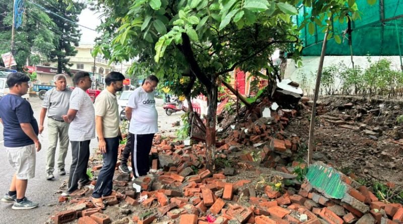भारी बारिश से क्षतिग्रस्त दीवार का निरीक्षण करने पहुंचे कैबिनेट मंत्री गणेश जोशी, दिए त्वरित मरम्मत के निर्देश