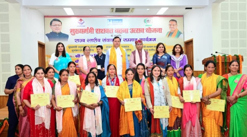देहरादून। मुख्यमंत्री पुष्कर सिंह धामी ने मुख्यमंत्री आवास स्थित मुख्य सेवक सदन में मुख्यमंत्री सशक्त बहना उत्सव योजना के अन्तर्गत सराहनीय कार्य करने वाले महिला स्वयं सहायता समूहों को सम्मानित किया और उनसे संवाद भी किया। इस अवसर पर मुख्यमंत्री ने मुख्यमंत्री उद्यमशाला योजना का शुभंकर एवं लोगो लॉन्च किया तथा हाउस ऑफ हिमालयाज के नये उत्पाद एवं वेबसाइट का लोकार्पण किया।
