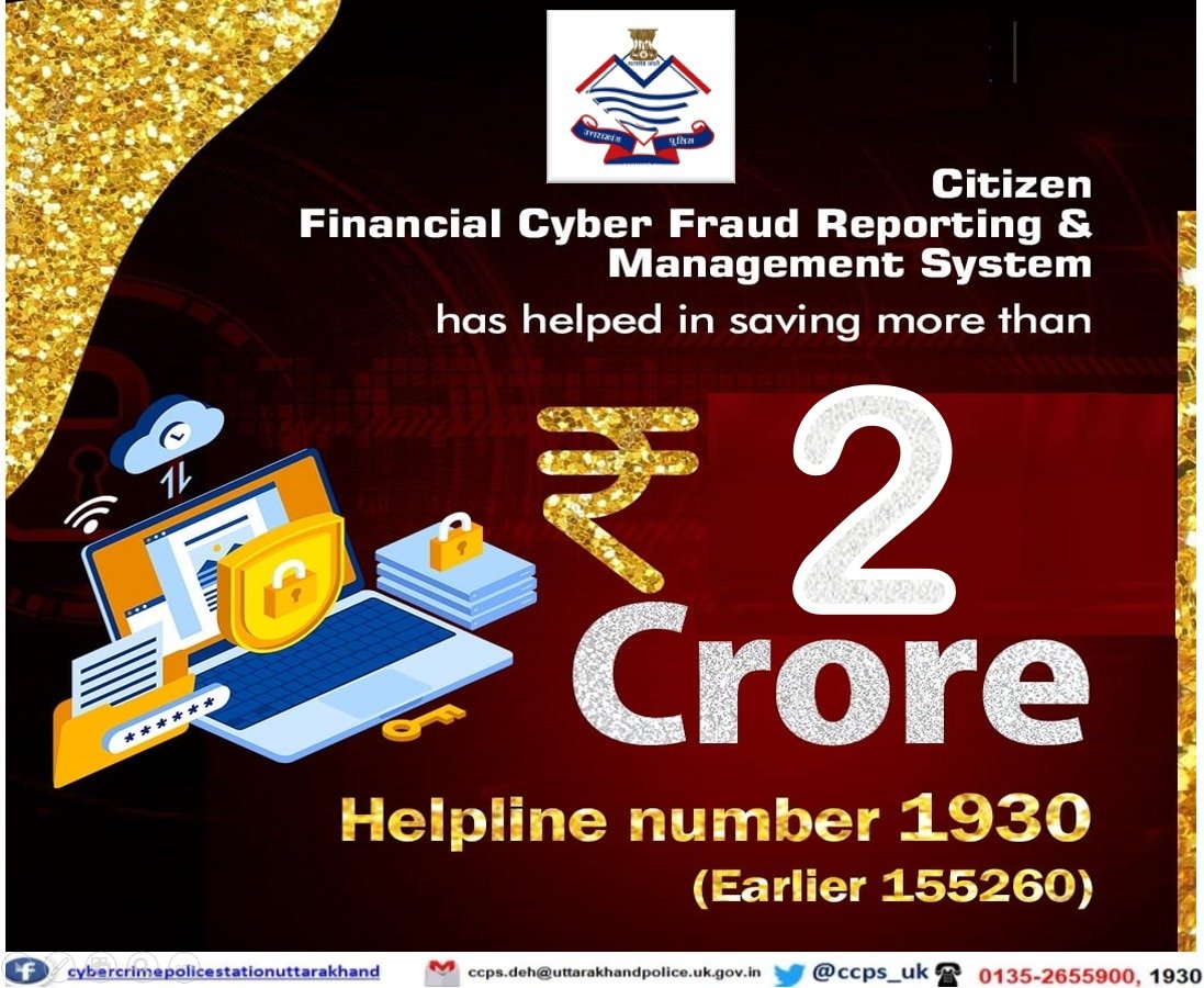विशेष: उत्तराखंड साइबर वित्तीय हेल्पलाइन 1930 की प्रथम वर्षगाठ एक वर्ष में 7723 शिकायतें दर्ज आमजनता की लगभग रु 2.11 करोड़ की धनराशि को बचाया