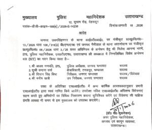 जनपद ऊधमसिंहनगर के ग्राम पैगा, थाना आईटीआई निवासी श्री सुखवन्त सिंह द्वारा दिनांक 10/11 जनवरी, 2026 की रात्रि काठगोदाम, हल्द्वानी में आत्महत्या किये जाने के प्रकरण में पुलिस मुख्यालय द्वारा निम्नलिखित निर्देश निर्गत किये गये हैं:-