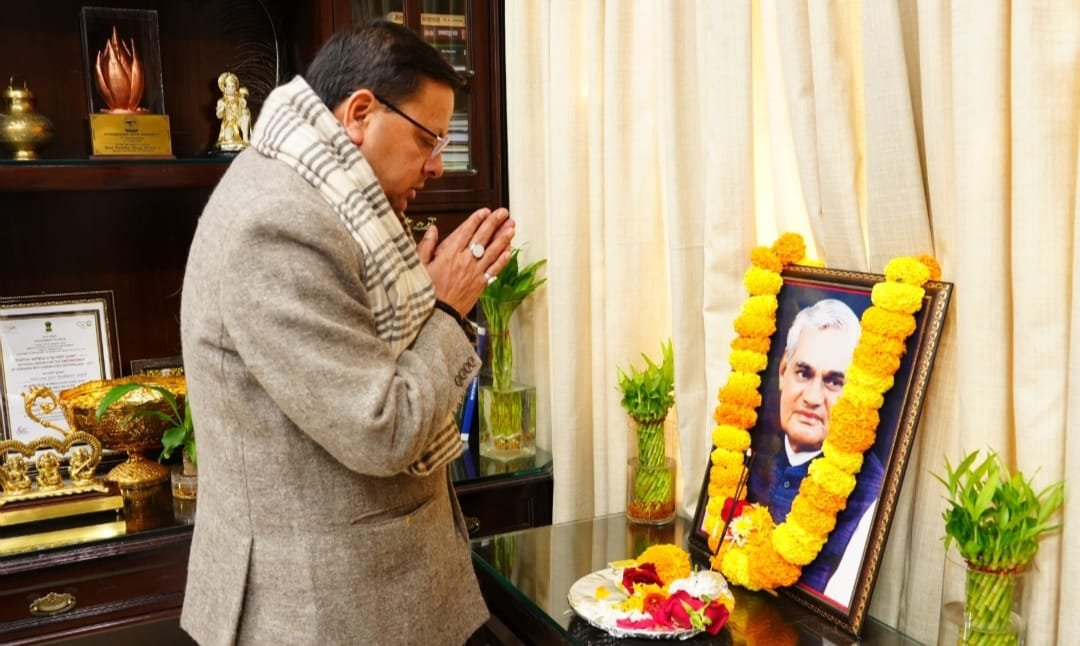 मुख्यमंत्री पुष्कर सिंह धामी ने पूर्व प्रधानमंत्री, भारत रत्न अटल बिहारी वाजपेयी की जयंती पर मुख्यमंत्री कैंप कार्यालय में उनके चित्र पर श्रद्धासुमन अर्पित करते हुए उनको नमन किया।