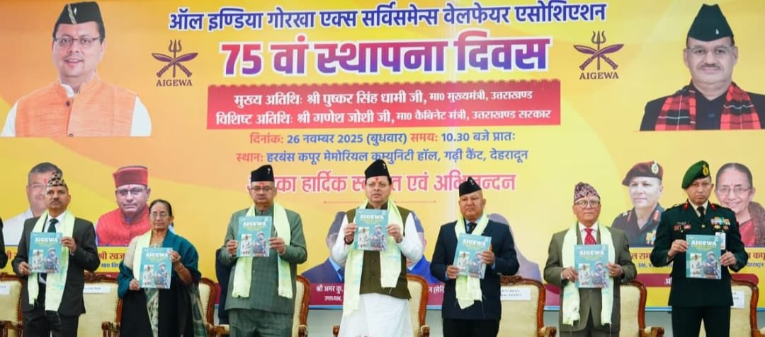 मुख्यमंत्री पुष्कर सिंह धामी ने बुधवार को ऑल इंडिया गोरखा एक्स-सर्विसमेन्स वेलफेयर एसोसिएशन की 75वीं वर्षगांठ के अवसर पर आयोजित कार्यक्रम में प्रतिभाग किया।