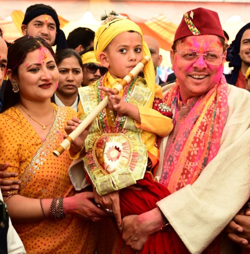 मुख्यमंत्री आवास का प्रांगण सोमवार को होली के रंगों में सराबोर नजर आया। इस दौरान प्रदेश की सांस्कृतिक समृद्धि और एकता के भी दर्शन हुए। पूर्वाह्न से ही प्रदेश भर के लोक कलाकारों, संस्कृति कर्मियों की टोलियां होली गायन करते हुए, सीएम आवास पहुंचती रही। एक तरफ गढ़वाल-कुमाऊं से लेकर जौनसार तक का होली गायन था, नृत्य था। इस दौरान होली के गीत गूंजे। पारंपरिक गायन हुआ। ढोल, मंजीरे बजे। पारंपरिक वाद्य यंत्रों की संगत ने होली गीतों के प्रभाव को और बढ़ा दिया। आओ दगड़ियो, नाचा गावा, आ गई रंगीली होली का आह्वान यदि कुमांउ से आए कलाकारों ने किया, तो राठ क्षेत्र के कलाकारों ने गाया-आई डान्ड्यू बसंत, डाली मा मौल्यार।