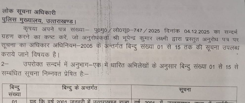 RTI से उजागर यह तथ्य उत्तराखण्ड पुलिस की संरचनात्मक असंतुलन की ओर इशारा करता है।