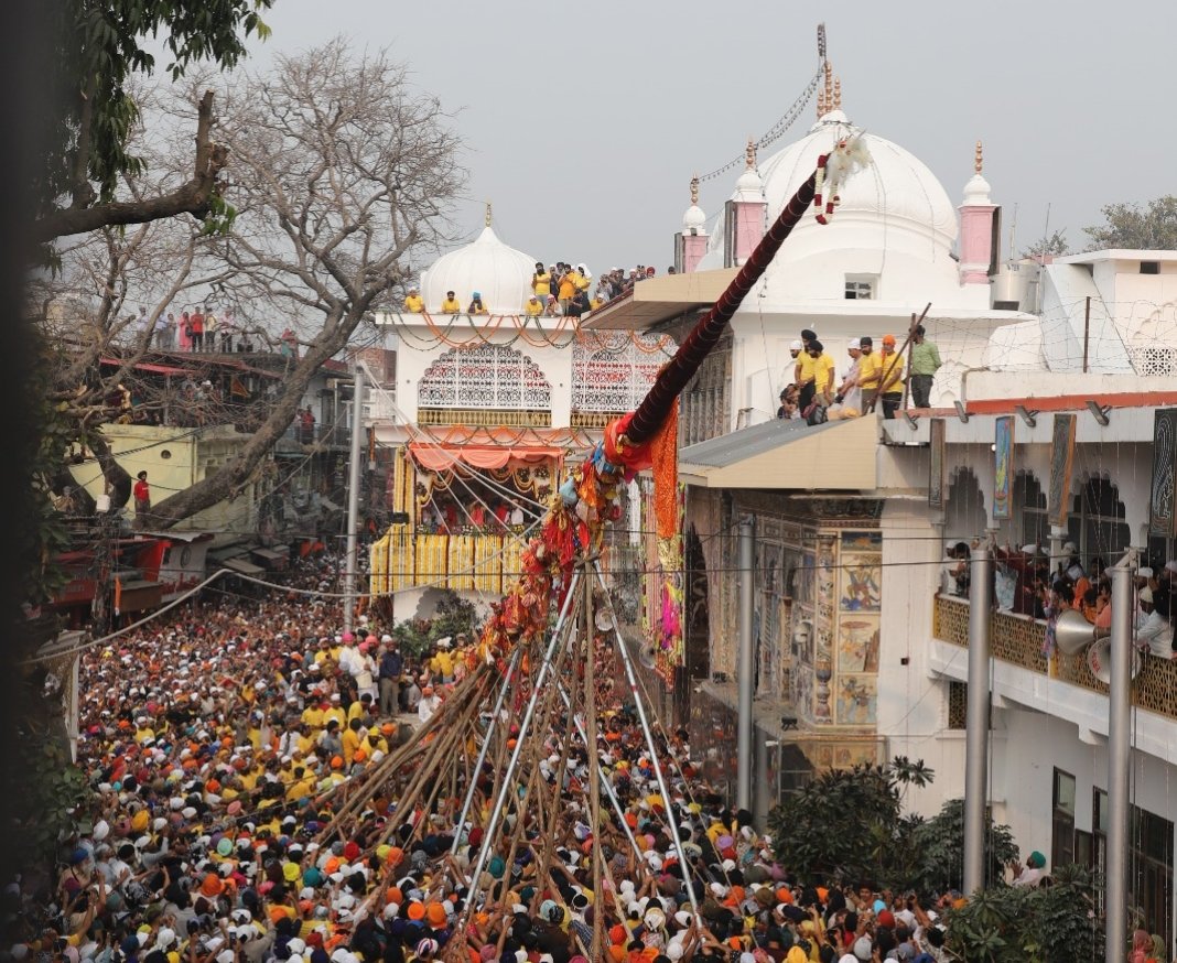 नए मखमली वस्त्र और सुनहरे गोटों से सुसज्जित श्री झण्डा साहिब का आरोहण होते ही पूरा परिसर जयकारों से गूंज उठा। श्रद्धालु लकड़ी की कैंचियों को थामकर पवित्र ध्वज को ऊंचाई तक पहुंचाने में सहभागी बने। यह दृश्य श्रद्धा, समर्पण और गुरु प्रेम की अनुपम मिसाल बना रहा।