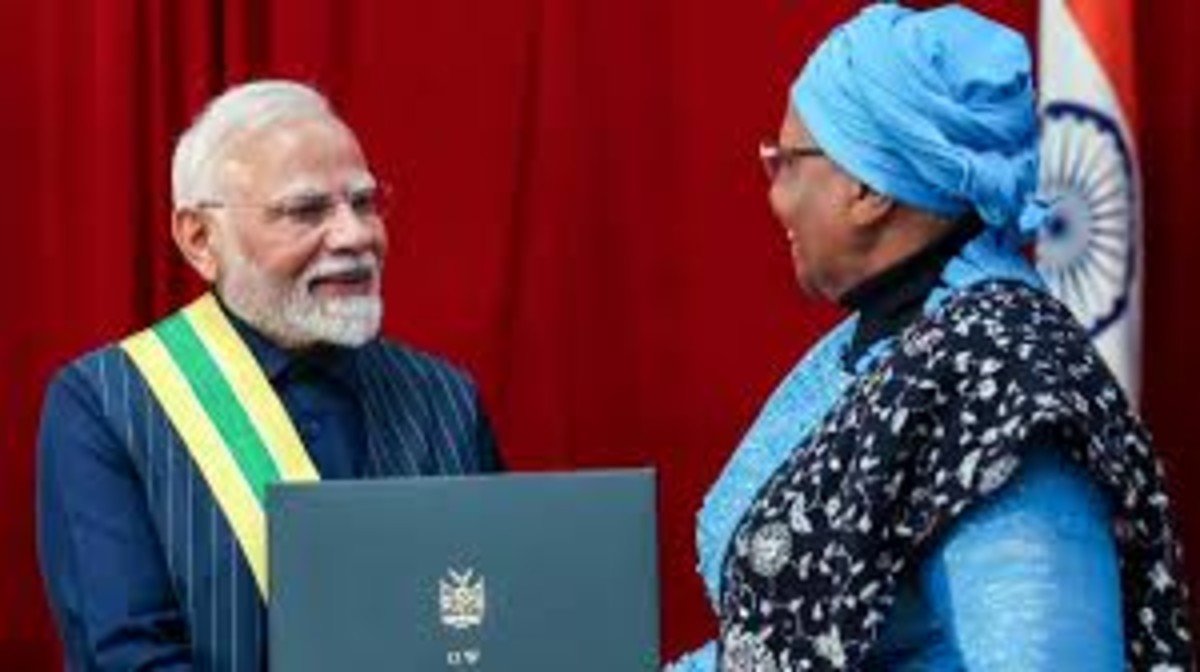नई दिल्ली। प्रधानमंत्री नरेंद्र मोदी को बुधवार को नामिबिया का सर्वोच्च नागरिक सम्मान ‘ऑर्डर ऑफ द मोस्ट एन्शिएंट वेल्वित्शिया मिराबिलिस’ से नवाजा गया। यह सम्मान उन्हें नामीबिया की राष्ट्रपति नेतुम्बो नंदी-डैतवाह ने एक खास समारोह में दिया।
