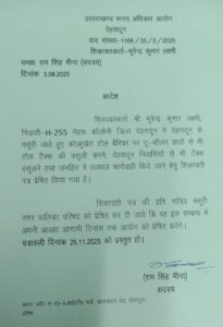 जनहित याचिका पर आयोग के सदस्य (आईपीएस) राम सिंह मीना ने सुनवाई करते हुए मामले को गंभीर मानते हुए मसूरी नगर पालिका परिषद से आख्या (रिपोर्ट) तलब करने का आदेश जारी किया है।